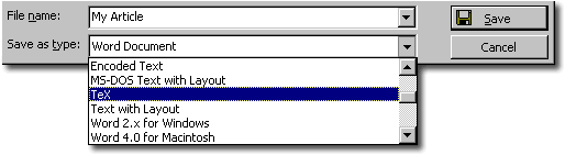 dialog box and choose "TeX" format: